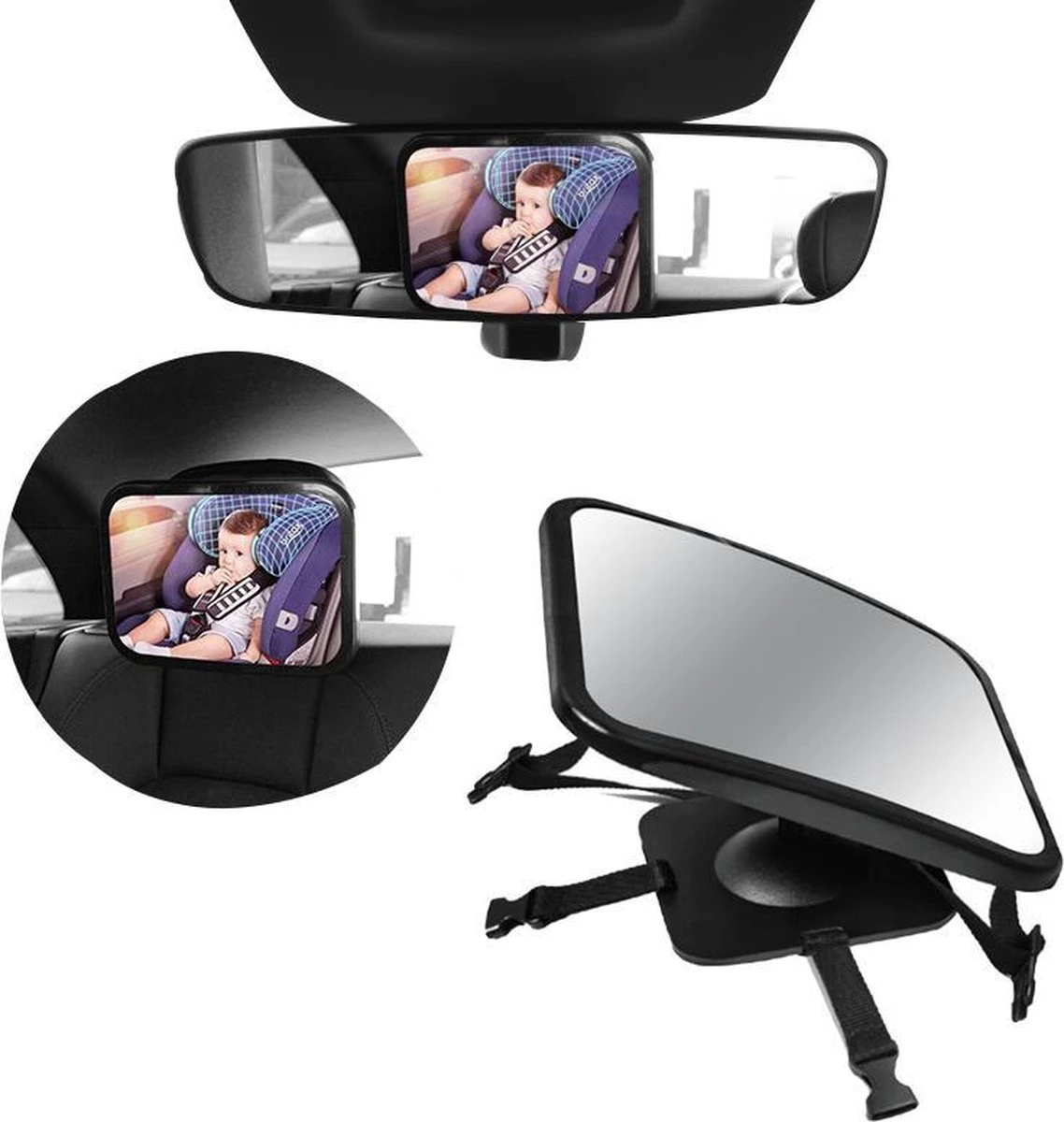De Achterbank baby spiegel is 360° Verstelbaar en u kunt hem op elk gewenste positie instellen. De spiegel is namelijk aangesloten op een zwenkbare bevestiging van de rugleuning. Hiermee krijgt u de perfecte hoek om uw baby goed in de gaten kunnen houden zonder uw Auto achteruitkijkspiegel te bewegen.