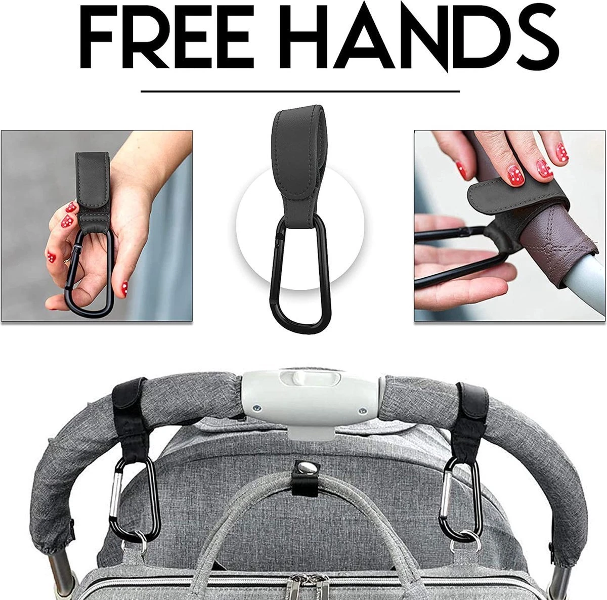 Gemakkelijk in gebruik: Heb je te veel tassen? Geen probleem. Onze wandelwagenhaakset is eenvoudig te bevestigen en te verwijderen. De wandelwagenhaken zijn een fluitje van een cent om te gebruiken, zelfs als je je handen vol hebt. Nooit meer je rug breken door alles zelf te dragen