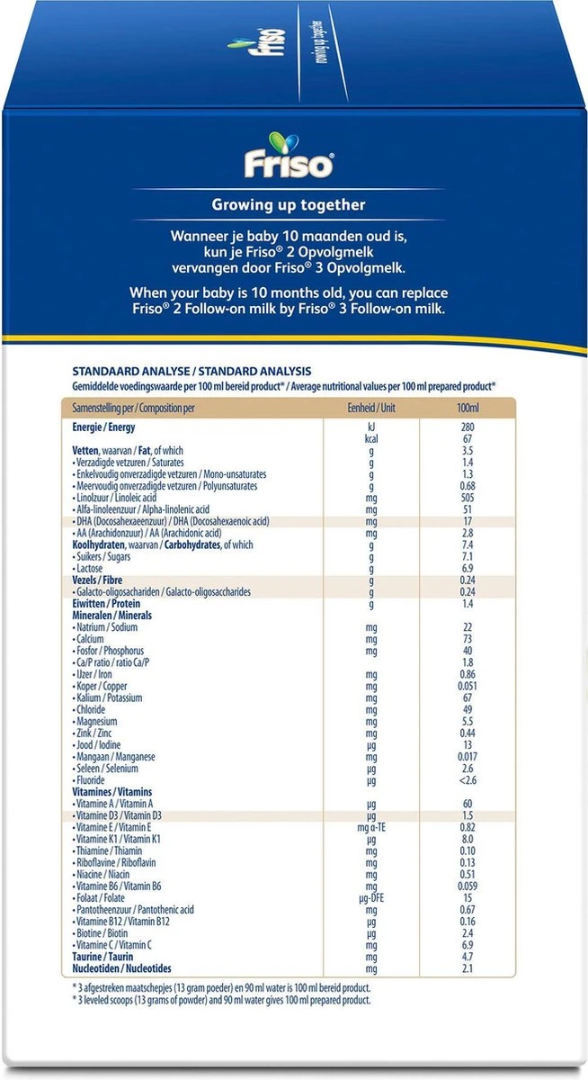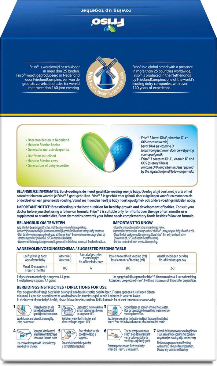 - Friso 3 opvolgmelk is niet geschikt voor kindjes jonger dan 10 maanden.