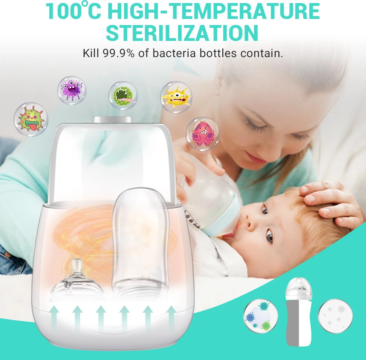 Multifunctionele Babyflesverwarmers zijn beschikbaar voor Snel Ontdooien/ Opwarmen met Stoom/ Constant Verwarmen in Waterbad/ Steriliseren/ Opwarmen Vasthouden/ Verwarmen Aanvullend Voedsel. Slechts één verwarmer is nodig om aan uw dagelijkse behoeften te voldoen en ruimte en budget te besparen.