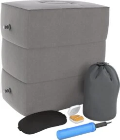 Dit opblaasbare kussen is onmisbaar als je op reis gaat met kleine kinderen. Doordat de kinderen in het voertuig kunnen slapen zullen zij minder vermoeid zijn. Maar ook voor jezelf biedt het in veel situaties extra comfort. Gebruik het als een voetensteun tijdens een lange zakenreis in de auto, trein of als vliegtuigkussen. Ook thuis of op kantoor biedt het voetkussen een aangename verlichting voor de benen en voeten.