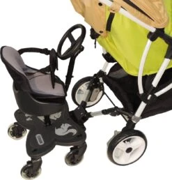 Honhill® – Kinder Meerijdplankje – Zwart – Kinderwagen – Buggy – 1 Wiel – Met Stoeltje