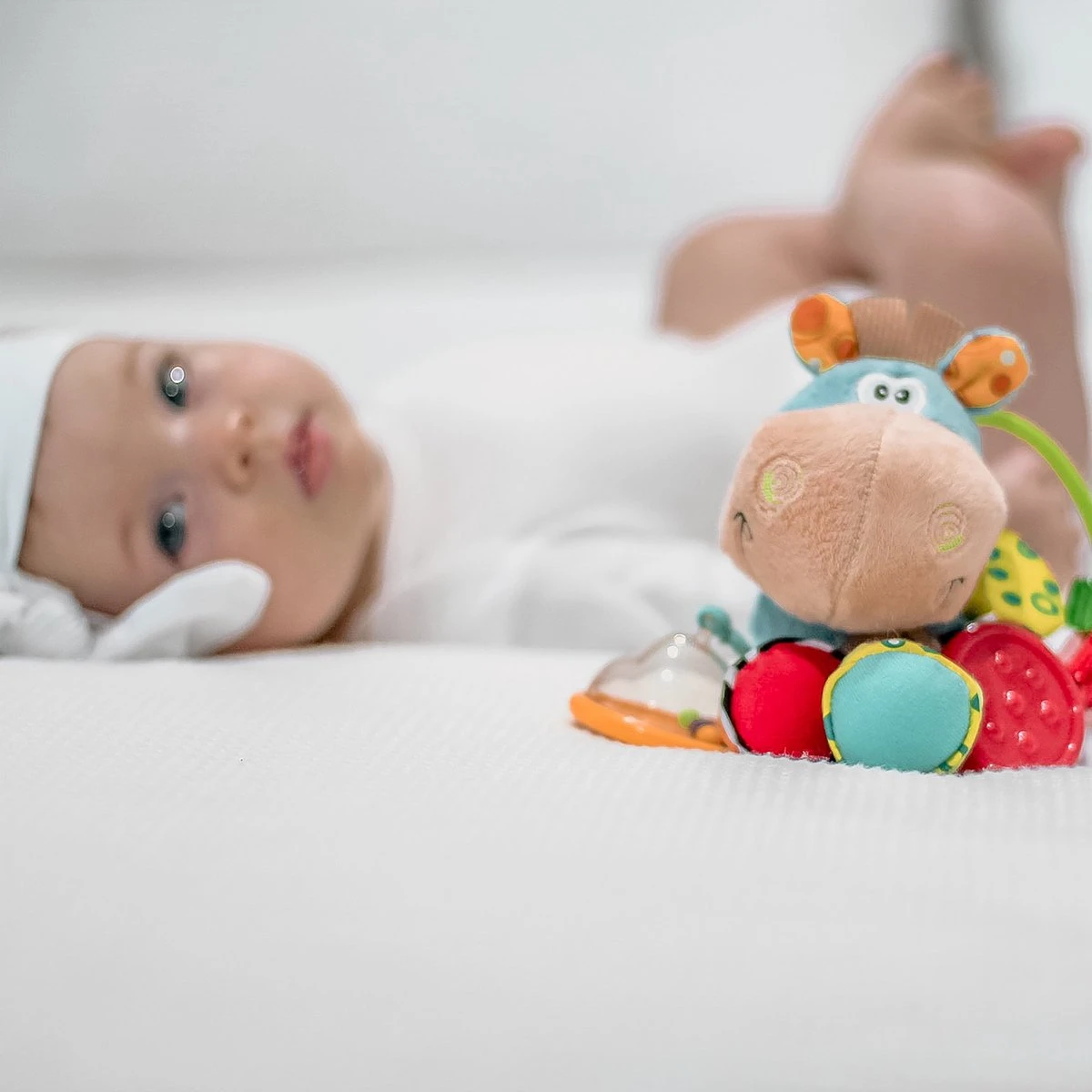 Clip, Clop, Clip Clop! Een van onze meest geliefde karakters, Clip Clop, is volgeladen met allerlei functies in deze interactieve rammelaar. Gevuld met veel verschillende activiteiten zoals ratelen, klik-klak kralen, een kiekeboe zadel, kreukelende functies en nog veel meer! Dit speeltje zal de baby uren vermaken terwijl het ook nog de fijne motoriek en de auditieve zintuigen stimuleert.